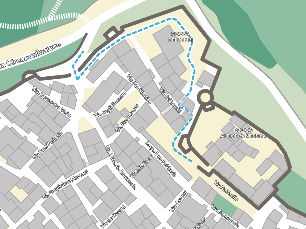 The route begins at the Lombi gateway, the historic headquarters of the mutual aid society and today the center of cultural initiatives. From the Piazza XVIII Novembre there is access to the fortress
